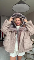Luxury Faux Fur Hooded Wool-Blend Coat – Oversized Winter Jacket