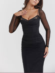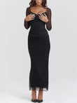 Black Backless Bodycon Suspender Maxi Dress