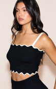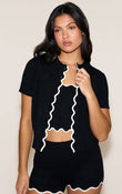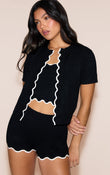 Black Contrast Soft Knit Scallop Hem Mini Set