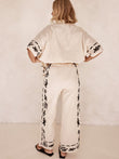 Step up your style game with our Black Printed Cream Wide Leg Pants.