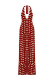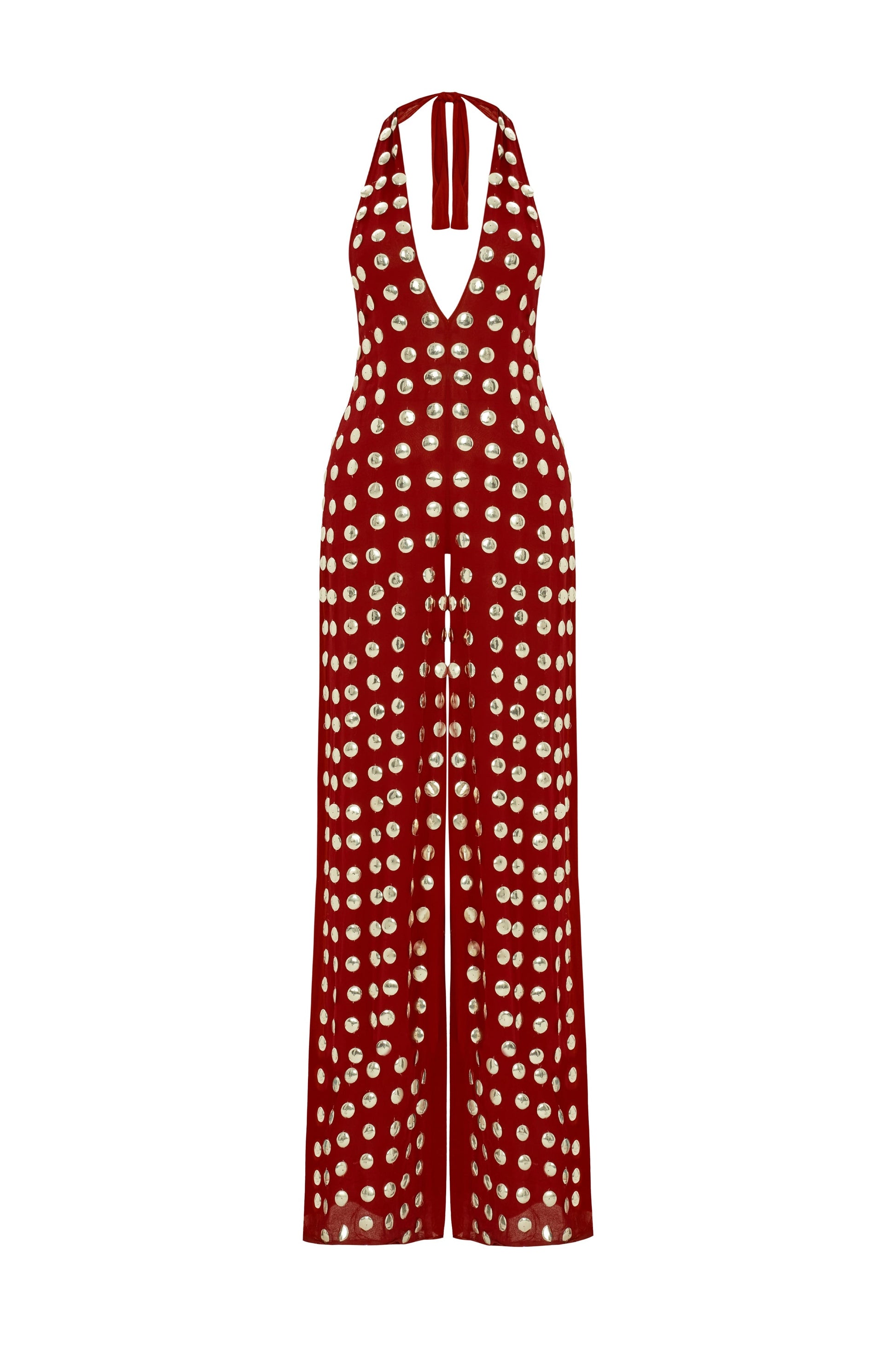 Burgundy Handmade Gold Polka Dot Jumpsuit