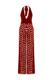 ✨ Burgundy Handmade Gold Polka Dot Jumpsuit