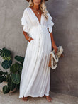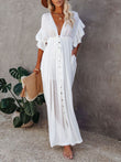 Button Cotton Linen Perfect Beach Boho Maxi Dress