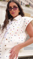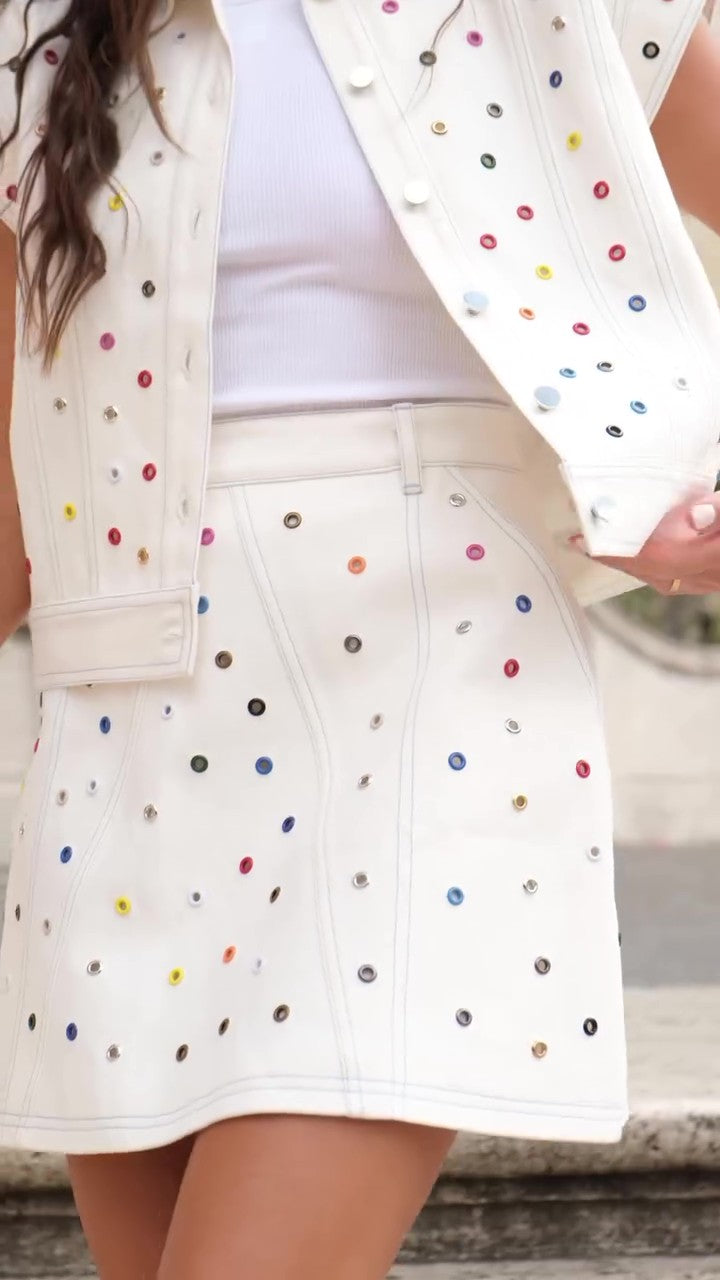 ✨Casual Colorful Eyelet Denim Vest Skirt Set