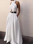 Criss Cross Halter Backless Jumpsuit Without Belt