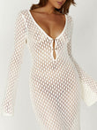 Crochet Fishtail Flare Sleeve Maxi Dress