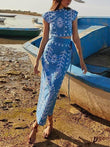 Ethnic Print Crop Top & Tire-up Wrap Midi Skirts Set