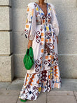 With the "Holiday Style Lantern Sleeve Printed Long Dress," you're not just wearing fashion; you're embracing the spirit of the season. Pair it effortlessly with sandals, wedges, or even layered with a beach cover-up – the lantern sleeve design adds a touch of whimsical elegance to your holiday look. This dress isn't just a vacation essential; it's a representation of your festive and free-spirited persona.