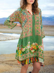 Ladies Casual Printed 3/4 Sleeve V Neck Dress