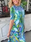 ntroducing our New Short-Sleeved Dress with Glass Printing! This chic and stylish dress is a perfect addition to your wardrobe. With its round neck and waist-short skirt design, it exudes an air of sophistication while offering comfort for all-day wear.
