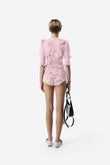 Sweet and eye-catching, this knit set features butterfly appliques on a soft pink knit base. The cropped cardigan pairs easily with the matching shorts for a cozy and alluring look. Whether you're sipping a latte or heading out for a casual outing, this set is a playful and elegant look.