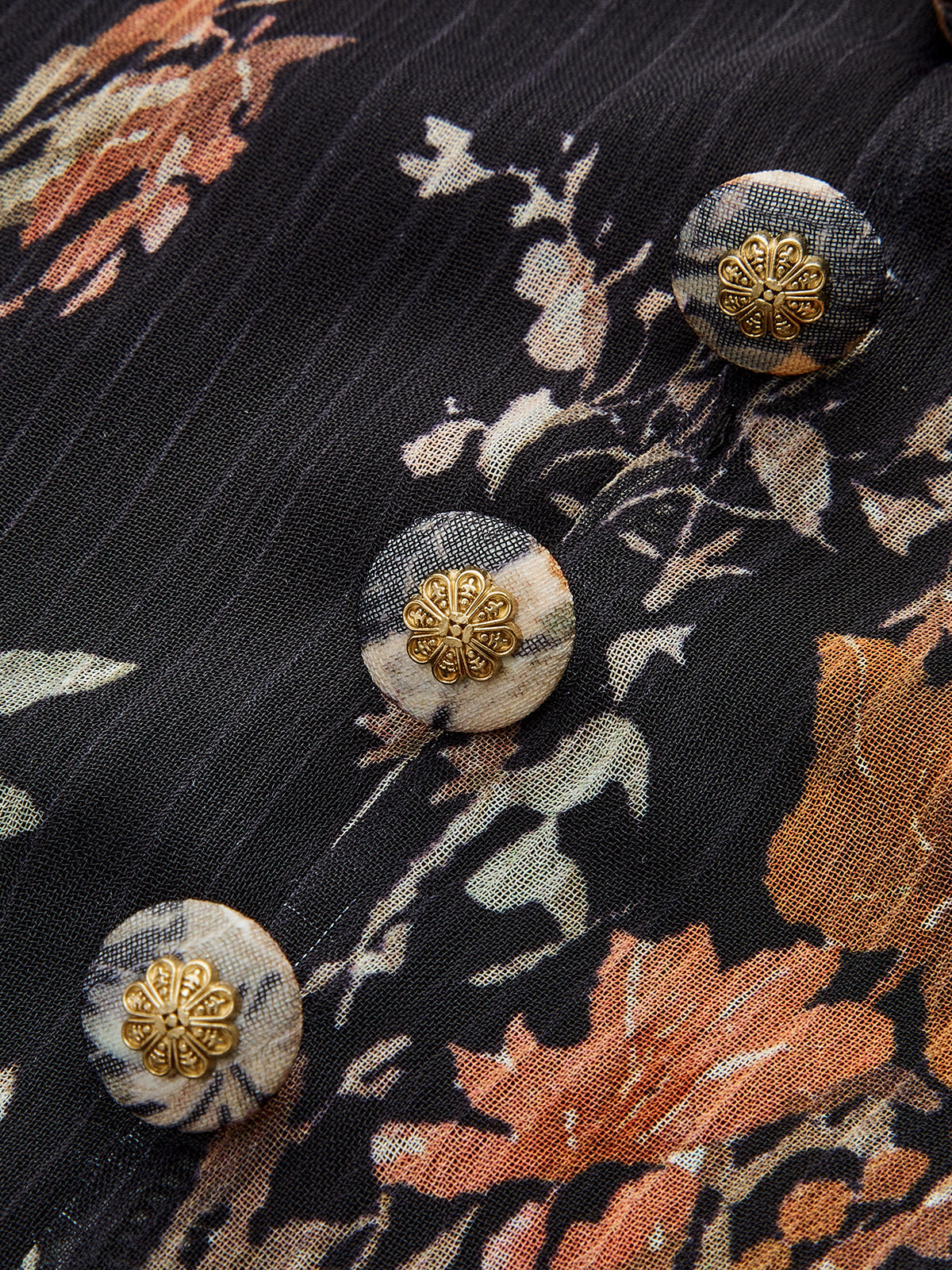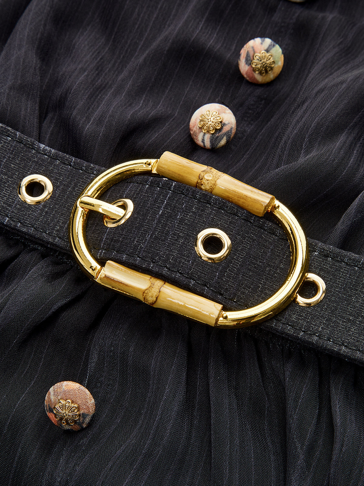 Semi-Sheer Chiffon Floral Print Belted Dress