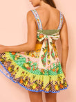 Summer MulticolorLemon Preated Hem Mini Dress