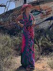 Tie-dye Print V-neck Cross Back Straps Stretch Maxi Dress