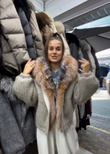Design: Two-tone base, oversized fur collar, relaxed fit