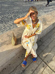 Unique Holiday Folk Floral Print Puff Sleeve Midi Dress
