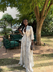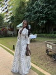 The fabric is light and flowy, making it comfortable even in warm weather. The dress's silhouette allows for easy movement, with a fitted bodice and loose skirt that flatters the figure, making it ideal for all body types.