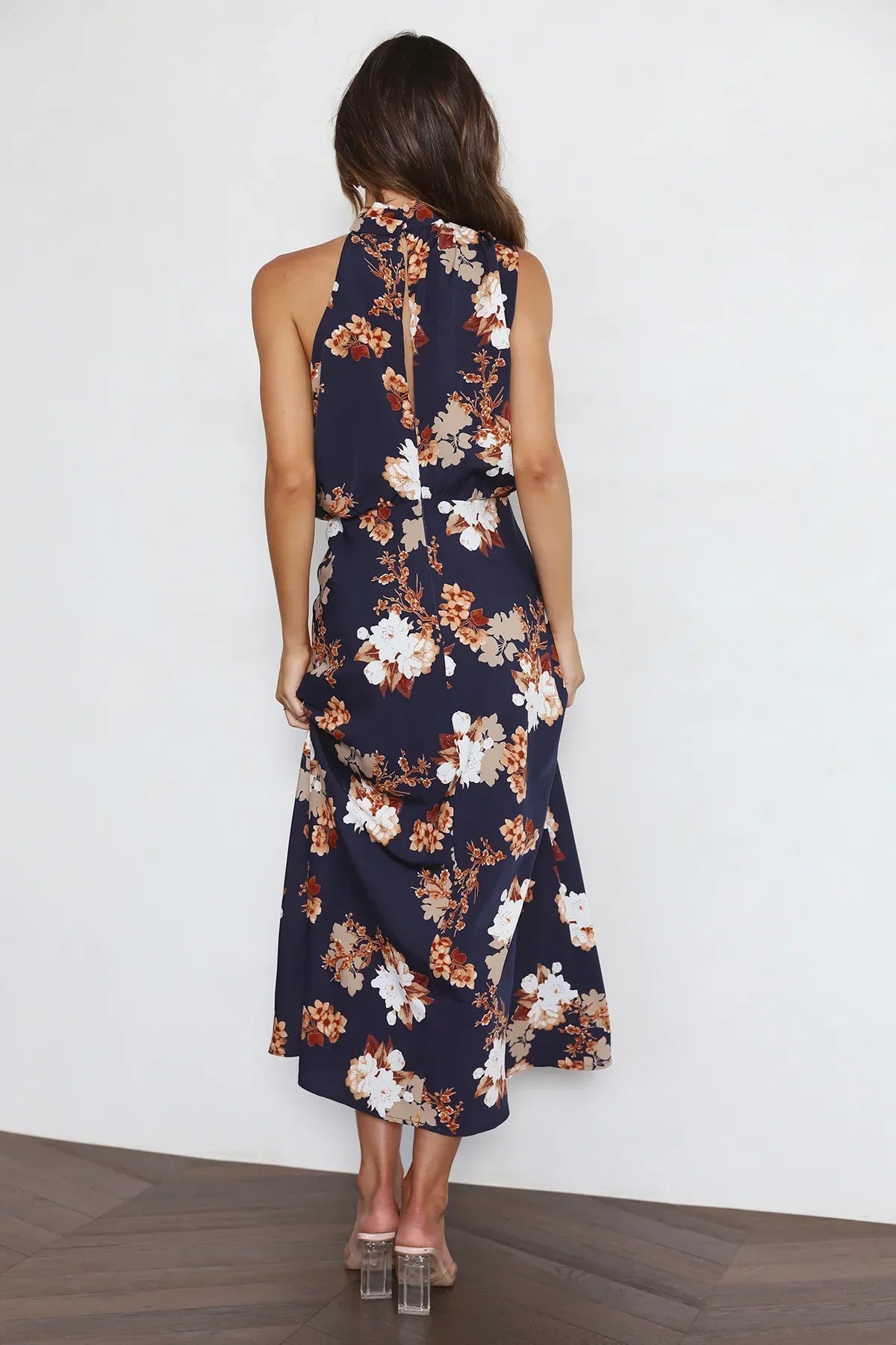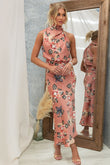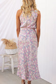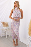 Wine Country Dates Floral Halter Neck Elastic Waist Maxi Dress